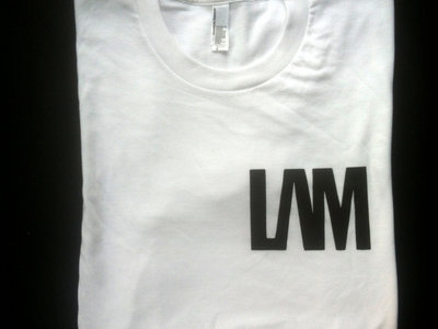 LAM logo design printed on white American Apparel Unisex t-shirts. Available in Small, Medium. Large and XL.
